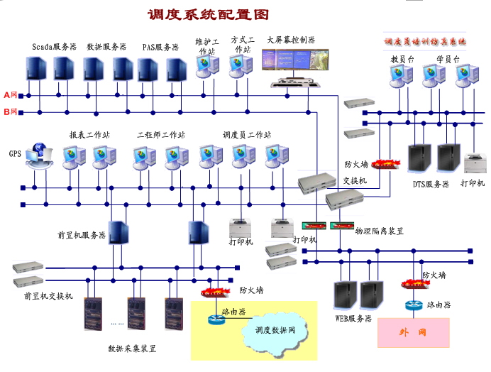 集成了數(shù)據(jù)采集和監(jiān)視控制(SCADA)、自動(dòng)發(fā)電控制(AGC)、自動(dòng)電壓控制(AVC)、廣域向量量測(cè)系統(tǒng)(WAMS)、電網(wǎng)分析軟件(PAS)、在線決策系統(tǒng)、智能調(diào)度(預(yù)警預(yù)控、故障診斷、故障恢復(fù))、調(diào)度員培訓(xùn)仿真(DTS)、調(diào)度管理系統(tǒng)(OMS)、WEB等各個(gè)應(yīng)用子系統(tǒng)。