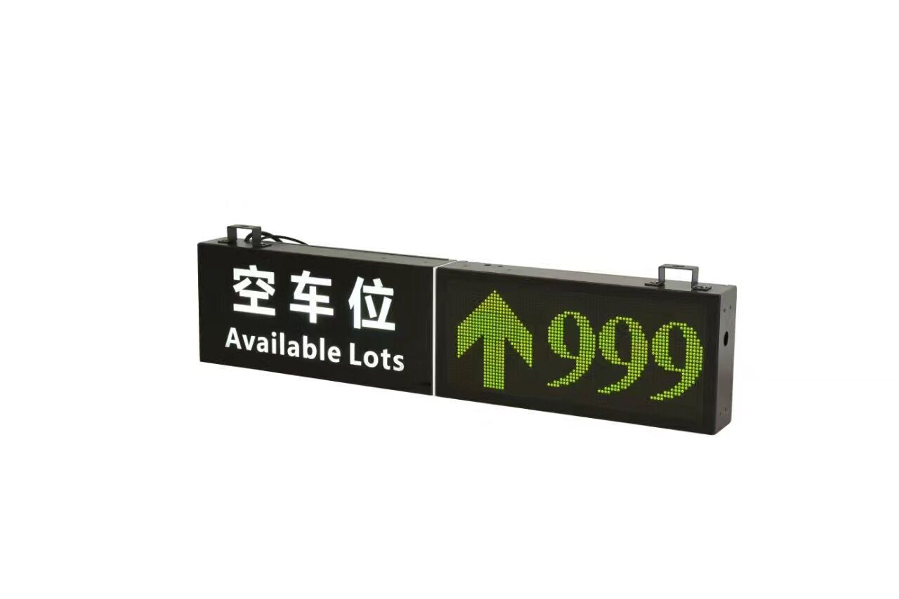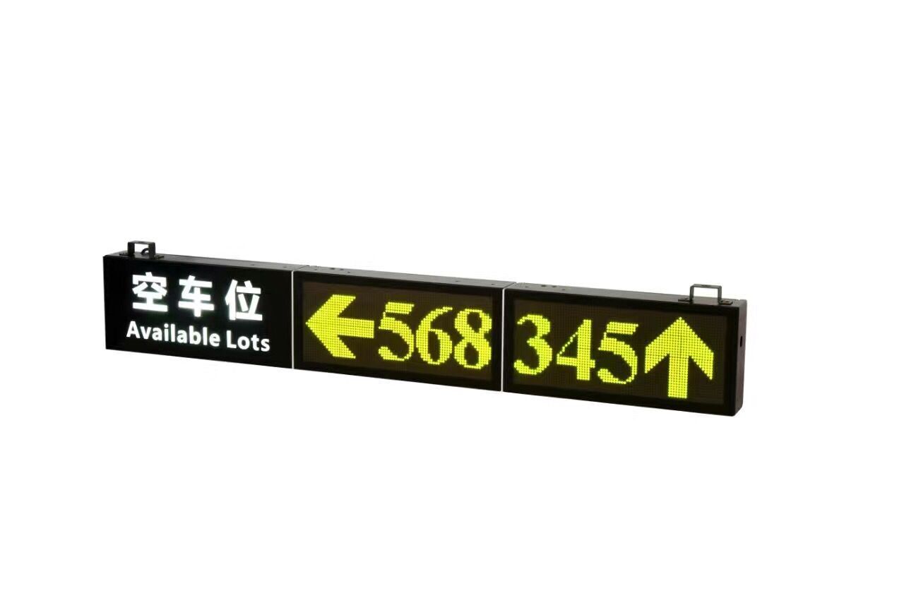 車位引導(dǎo)屏安裝在停車場(chǎng)內(nèi)部重要的岔道口。接收集中控制器的輸出信息,以數(shù)字、箭頭等形式顯示該區(qū)域的空車位數(shù),引導(dǎo)車主快速找到的空車位,保證停車場(chǎng)的暢通和車位充分利用。